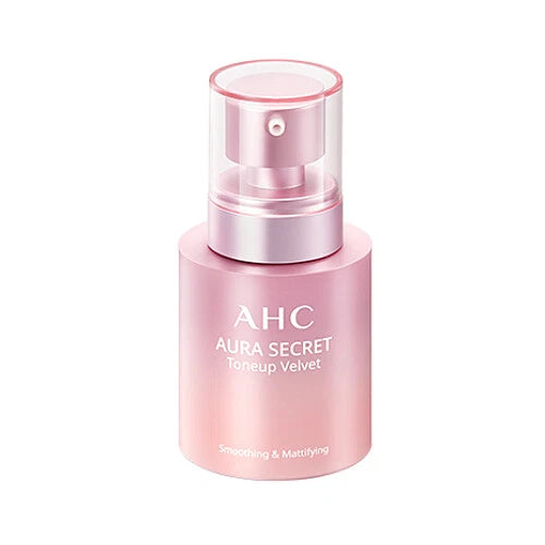 AHC Aura Secret Tone-Up Velvet Makeup Base offers a smooth, matte finish with its velvet creamy texture, effectively reducing shine and creating a flawless skin appearance. It features a triple pink complex, including pink milk complex, pink blurring powder complex, and pink light complex, to moisturize, brighten, and provide a lively pink tone-up effect for vibrant and healthy-looking skin.