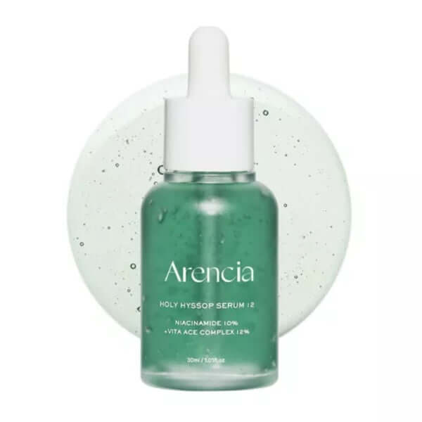 ARENCIA Holy Hyssop Serum 12 is a brightening serum designed to revitalize dull skin and diminish hyperpigmentation and dark spots. Enriched with green hyssop extract from France, rich in Vitamins A, C, and E, it supports pore care and enhances skin texture. The serum features a 12% Vita ACE Complex, delivering a potent blend of vitamins to boost radiance and glow. Additional ingredients like Niacinamide and Vitamin B provide moisture, nourishment, and texture improvement. Its lightweight yet deeply hydrating formula absorbs quickly, leaving skin refreshed and luminous.