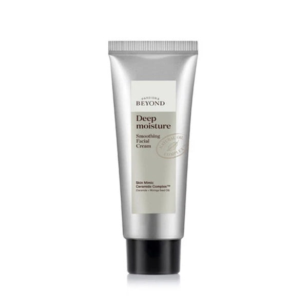 BEYOND Deep Moisture Smoothing Facial Cream delivers intensive hydration for sensitive skin with its advanced Skinmimic Ceramide Complex. This specialized formula combines ceramide and moringa oil with panthenol and madecassoside to soothe irritation while strengthening the skin's natural barrier. The Natural Oil Complex, featuring squalane, jojoba, and camellia oils, provides essential nutrients that protect against environmental aggressors while ensuring long-lasting moisture retention and improved skin resilience.