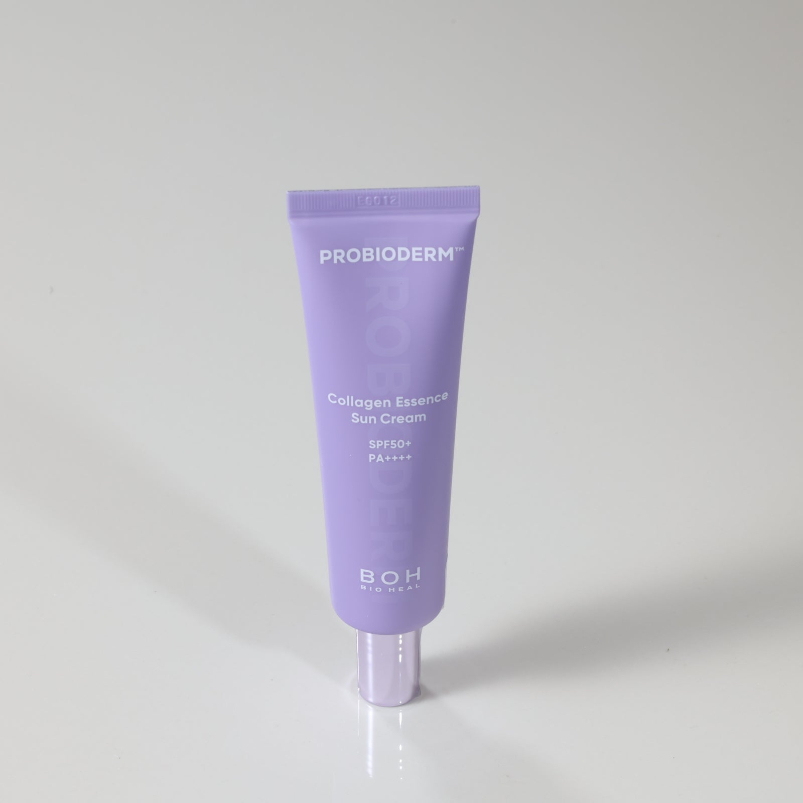 BIOHEAL BOH Probioderm Collagen Essence Sun Cream delivers superior UV protection with SPF50+ PA++++ while addressing signs of aging. Its lightweight essence texture absorbs rapidly without residue, featuring 78% skincare ingredients. The proprietary Probioderm formula and Collagen Defense complex work synergistically to firm and tighten skin. Dermatologically tested for safety, this multifunctional sunscreen elevates your daily sun protection routine beyond mere UV defense.