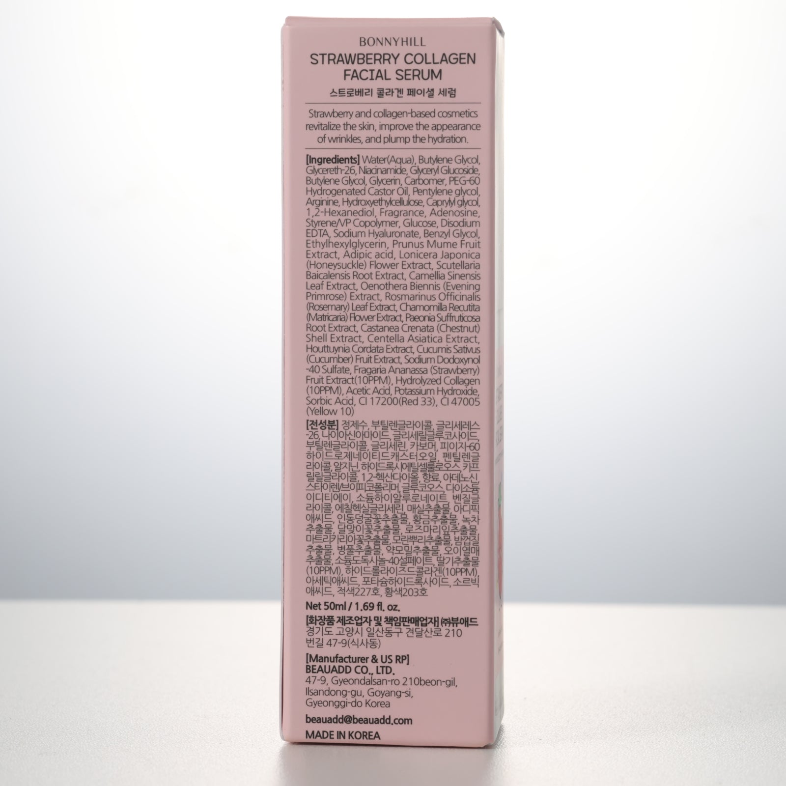 Contains collagen ingredients, which has excellent moisturizing effect and helps to relieve dryness and increase skin elasticity. Also, due to complex extracts such as vitamin C, ellagra, flavonoid, and polyphenol, it helps to relieve skin aging and improve skin tone, have antioxidant effects, and soothe the skin.