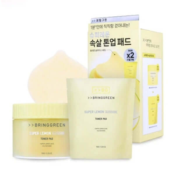 Expertly formulated brightening toner pads featuring 98% pure Glutathione to combat melanin pigmentation and even skin tone. Contains premium South Korean lemon extract with 4x more vitamins than standard lemons, complemented by soothing Panthenol, Allantoin, and Azulene for gentle brightening without irritation. The distinctive lemon-shaped microfiber pads function effectively as both wiping and mask pads, delivering professional-grade results with each application. Includes 180 pads total (90pcs + 90pcs refill).