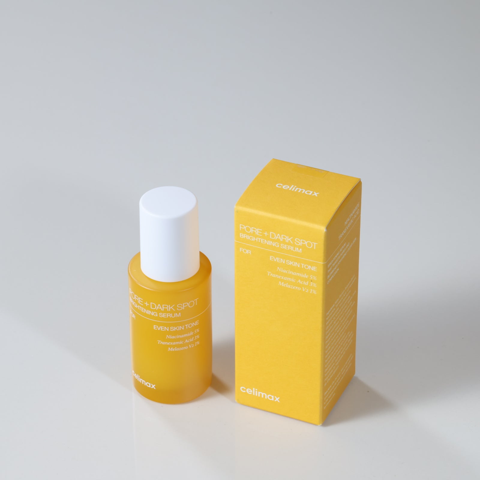 CELIMAX Pore + Dark Spot Brightening Serum delivers professional-grade brightening with a potent blend of 3% Tranexamic Acid, 5% Niacinamide, and 1% Melazero V2 to visibly reduce dark spots and blemishes. Plant-based Hyaluronic Acid provides deep hydration, while the lightweight, watery formula absorbs instantly without residue or tackiness. Hypoallergenic and dermatologist-tested, this serum is ideal for sensitive skin seeking effective brightening without compromise.