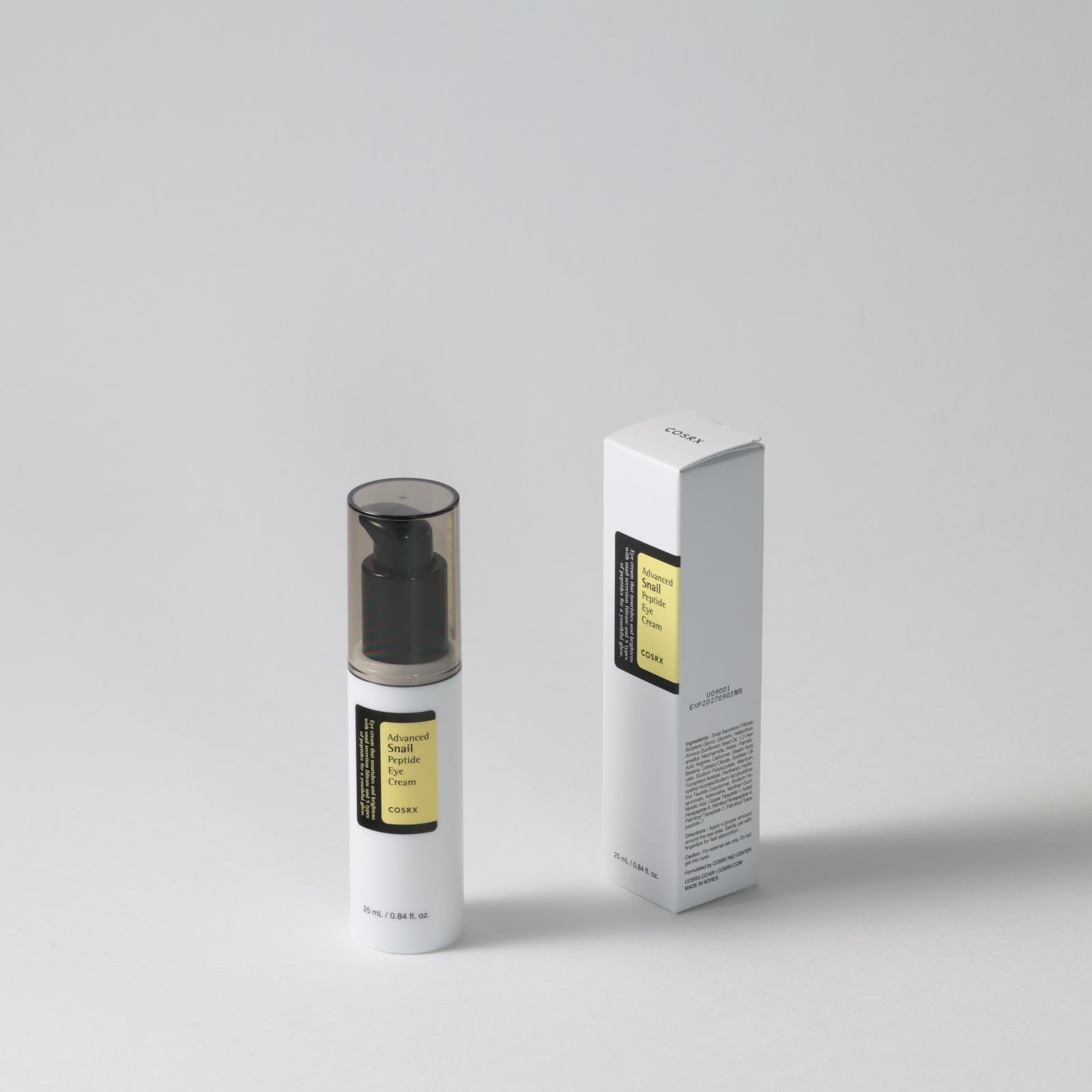 COSRX Advanced Snail Peptide Eye Cream delivers lightweight hydration and visible brightening in one efficient formula. Enriched with snail secretion filtrate and five peptide complexes, this fast-absorbing cream targets dark circles, fine lines, and loss of elasticity without heaviness. Niacinamide amplifies collagen production while maintaining optimal moisture balance. Suitable for all ages and skin types, from teens to mature skin, this multi-tasking eye cream provides professional-grade results without over-nourishment. The 25ml size offers extended use for consistent, transformative eye care.