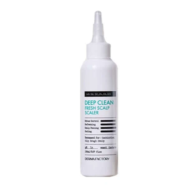DERMA FACTORY Deep Clean Fresh Scalp Scaler utilizes 95% natural ingredients to effectively purify the scalp. The formula combines coconut oil-derived surfactants that dissolve impurities while preserving the scalp's protective barrier. Salicylic acid removes keratinized cells and excess sebum, while the patented Anti-Sebum P (HD) complex featuring pine extract and David's elm root extract regulates sebum production and provides soothing benefits. This professional-grade treatment ensures optimal follicle nutrition by eliminating accumulated debris and toxins.