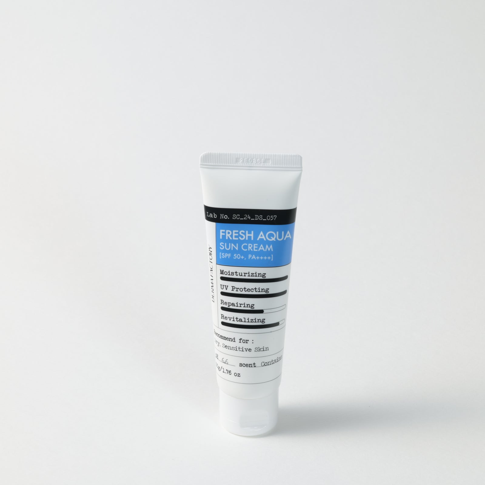 DERMA FACTORY Fresh Aqua Sun Cream delivers superior sun protection with SPF50+ PA++++ while maintaining optimal skin hydration. Its specialized moisture complex combines glyceryl glucoside, trehalose, birch sap, and ultra-low molecular hyaluronic acid to replenish moisture levels. This chemical sunscreen absorbs and converts UV rays into heat without leaving a white cast. The lightweight, non-sticky formula spreads evenly and absorbs quickly, making it ideal for multiple applications and as a perfect makeup base. Suitable for daily use with a refreshing finish.