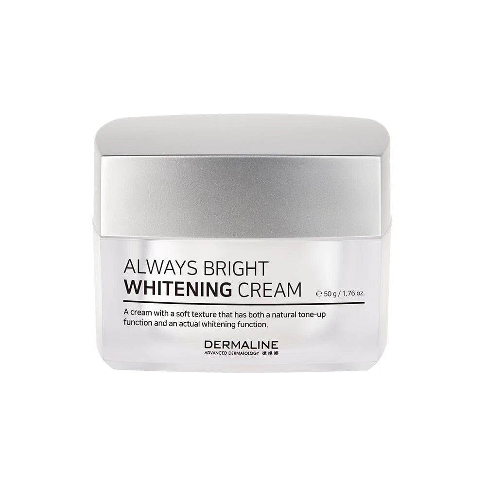 DERMALINE Always Bright Whitening Cream 50mL combines advanced whitening and wrinkle improvement technologies to promote a naturally radiant complexion. Its crystal brightening formula, known as a "retouching cream," features a soft, lightweight texture that absorbs quickly for immediate skin refinement. The cream also shields skin from indoor UV rays and daily environmental stressors while delivering essential nutrients to enhance smoothness and youthful vitality. Ideal for maintaining healthy, brightened skin throughout daily wear.