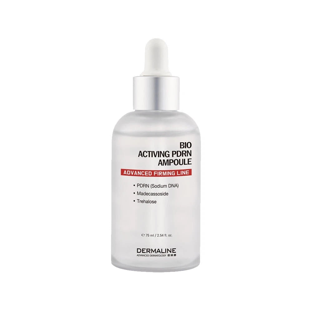DERMALINE Bio Activing PDRN Ampoule delivers intensive hydration and supports skin barrier repair with its potent blend of PDRN from salmon DNA, madecassoside, and trehalose. This advanced serum enhances cell regeneration while soothing and moisturizing dry skin. It helps reduce the appearance of wrinkles by improving elasticity and firmness, promoting a healthier, smoother, and more resilient complexion—ideal for anyone seeking to restore vitality and radiance to aging skin.