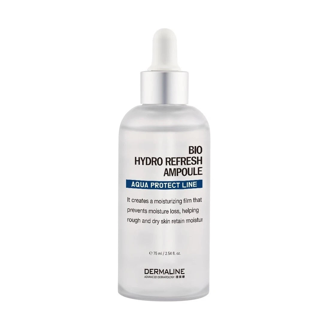 DERMALINE Bio Hydro Refresh Ampoule delivers deep hydration with hyaluronic acid while ceramide forms a protective barrier to prevent moisture loss. Its lightweight, fast-absorbing formula ensures a non-sticky finish and enhances the effectiveness of subsequent skincare steps by improving absorption. Ideal for maintaining balanced, hydrated skin throughout the day.