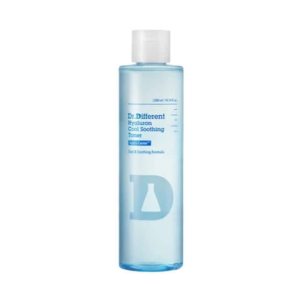 A specialized cooling toner formulated with Hydra-Cooler technology that rapidly reduces skin temperature and calms irritation. This multi-hyaluronic acid formula strengthens the moisture barrier while providing long-lasting hydration for both dry and oily skin types. The Dr.Different Hyaluron Cool Soothing Toner delivers an instant cooling sensation without artificial ingredients, effectively reducing redness and sensitivity caused by environmental stressors while promoting cellular renewal.