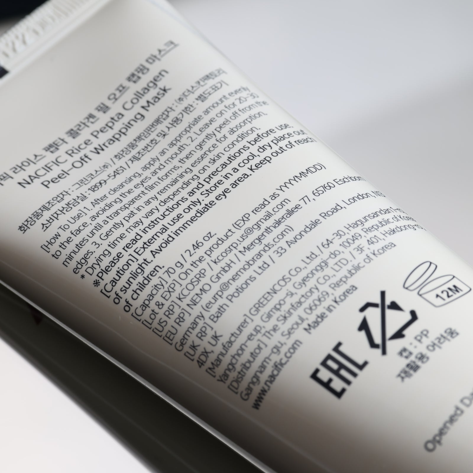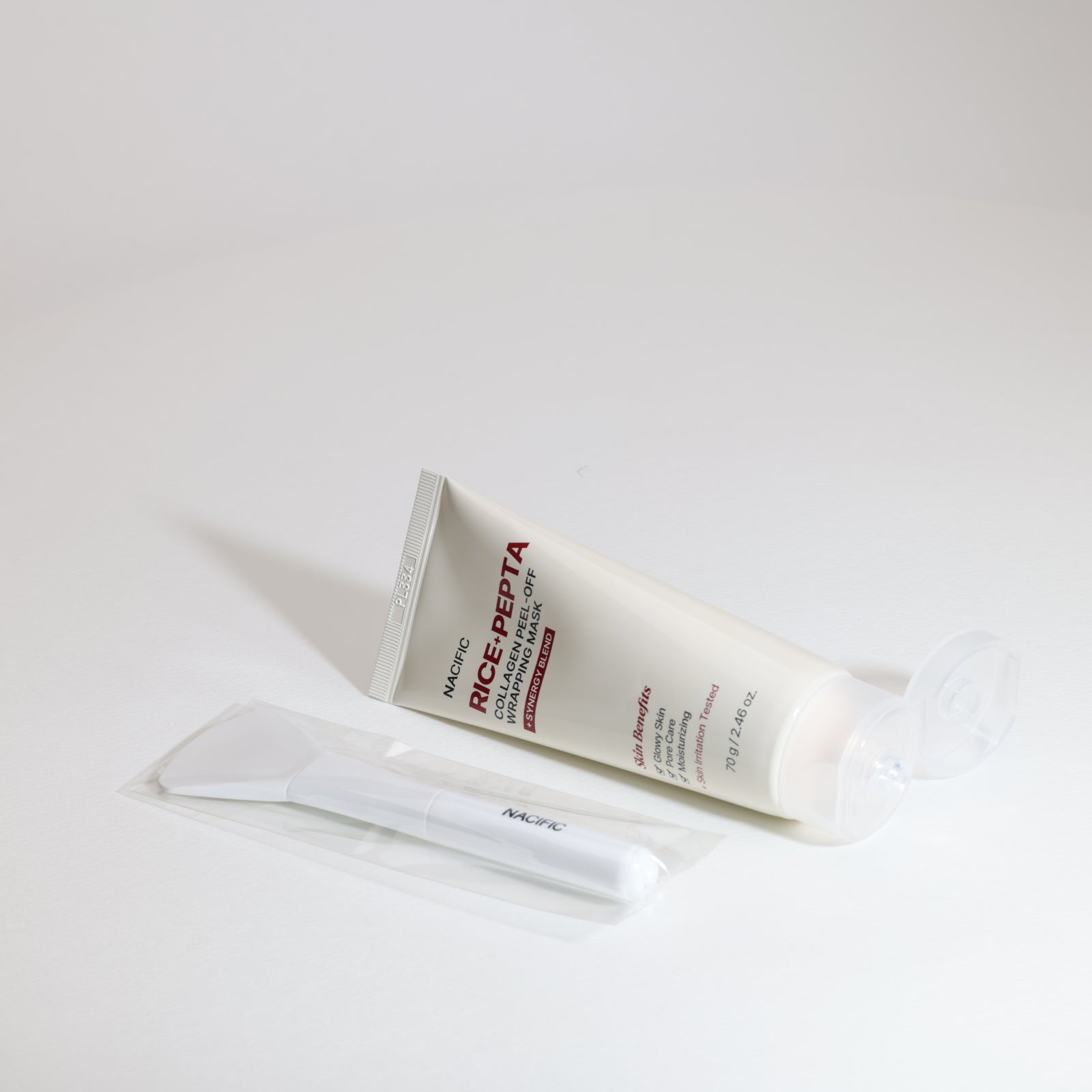 NACIFIC Rice Pepta Collagen Peel Off Wrapping Mask delivers firming and lifting benefits with Hydrolyzed Collagen while revitalizing rough skin through Oryza Sativa (Rice) Extract. Enriched with PEPTA-13 Complex and CICA-Exo, it promotes radiant, glowing skin. The Hyaluronan 11 Multi-Complex provides deep hydration, making it ideal for dry skin. This mask also supports pore care and enhances skin elasticity. Dermatologically tested for irritation, it offers a safe and effective solution for improving skin texture and moisture balance.