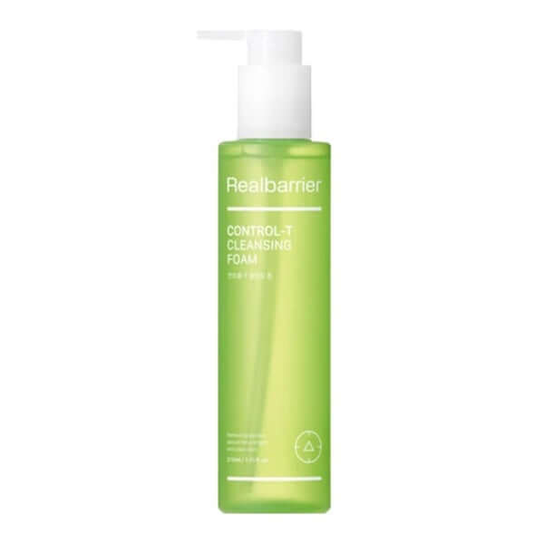 REAL BARRIER Control-T Cleansing Foam effectively removes excess sebum, promoting bright and clear skin. Clinical results show a significant reduction in whiteheads and blackheads by up to 55% after four weeks. It decreases skin oil and sebum content by up to 60% and 32%, respectively. Formulated with a 3 Refreshing Complex, it soothes and protects sensitive skin. Its mildly acidic gel texture matches the skin’s pH, cleansing deeply without causing dryness or tightness, while moisturizing and removing 98% of skin impurities for a balanced, refreshed complexion.
